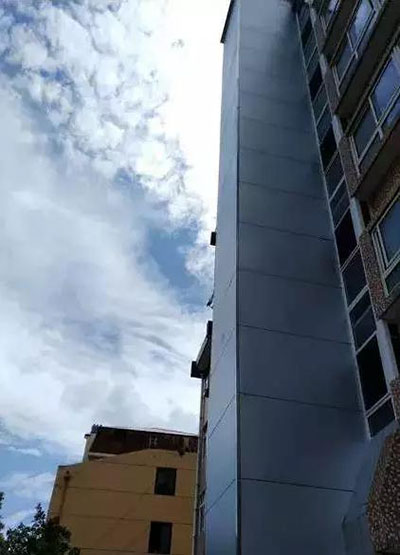 采用這種加裝方式大多是因為樓的南面需要過車等,這時候就可以考慮將電梯加裝在樓宇的陰面,徹底避免對采光和通風的影響。
