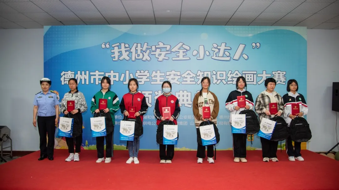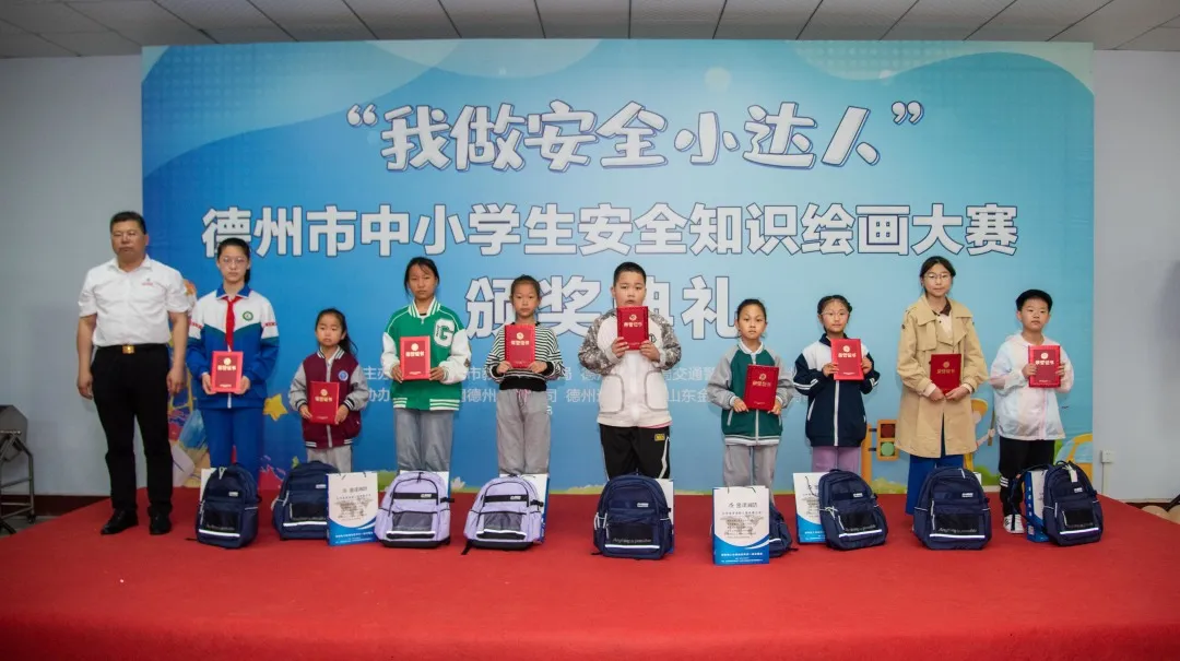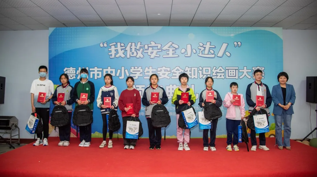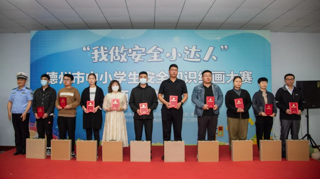 2023年5月27日上午,“我做安全小達(dá)人”德州市中小學(xué)生安全知識繪畫大賽活動頒獎典禮在德州通懋集團(tuán)隆重舉行。出席本次典禮的有德州市公安局交通警察支隊(duì)黨委委員、副支隊(duì)長王東、德州市教育和體育局安全科科長歐杰、德州市公安局交通警察支隊(duì)宣傳教育科科長楊紅省、德州晚報(bào)社副社長單歆歆、德州通懋集團(tuán)董事長蘇愛英、山東金澤消防工程有限公司董事長沙志勇。